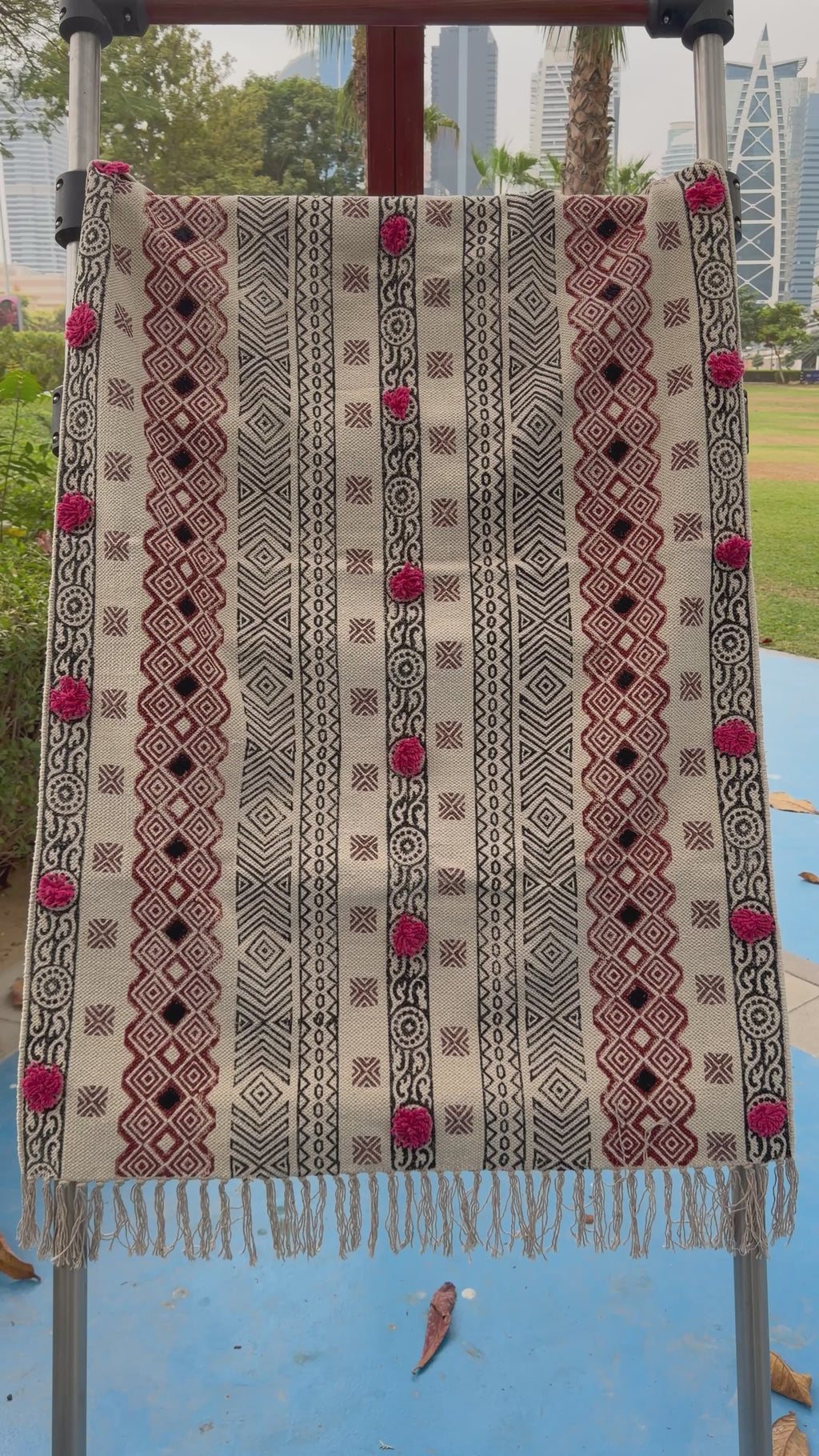Add a touch of artisanal charm to your space with this handmade dhurrie, featuring exquisite hand block printing and delicate hand embroidery. Crafted from high-quality cotton, this versatile rug is perfect for your room, drawing area, balcony, or garden. Its intricate patterns and vibrant colors bring warmth and elegance, while the durable weave ensures long-lasting use. Whether you’re styling an indoor space or an outdoor nook, this dhurrie is a perfect blend of tradition and contemporary aesthetics.