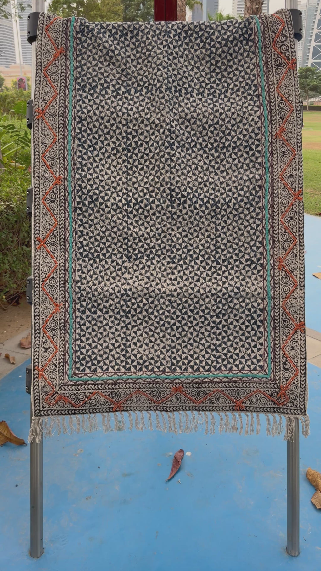 Add a touch of artisanal charm to your space with this handmade dhurrie, featuring exquisite hand block printing and delicate hand embroidery. Crafted from high-quality cotton, this versatile rug is perfect for your room, drawing area, balcony, or garden. Its intricate patterns and vibrant colors bring warmth and elegance, while the durable weave ensures long-lasting use. Whether you’re styling an indoor space or an outdoor nook, this dhurrie is a perfect blend of tradition and contemporary aesthetics.