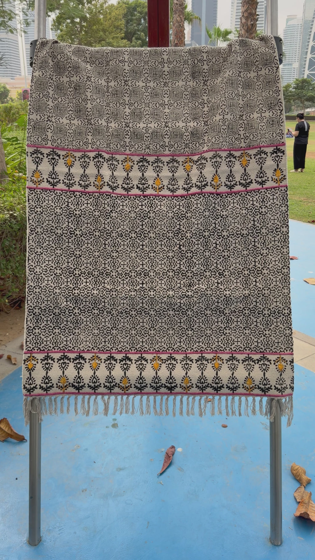Add a touch of artisanal charm to your space with this handmade dhurrie, featuring exquisite hand block printing and delicate hand embroidery. Crafted from high-quality cotton, this versatile rug is perfect for your room, drawing area, balcony, or garden. Its intricate patterns and vibrant colors bring warmth and elegance, while the durable weave ensures long-lasting use. Whether you’re styling an indoor space or an outdoor nook, this dhurrie is a perfect blend of tradition and contemporary aesthetics.